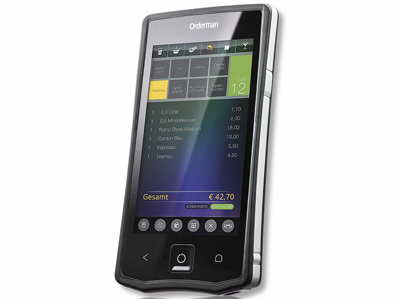 | El Orderman 7 cautiva con su gran pantalla HD de 5 pulgadas rica en contrastes, que garantiza una legibilidad extraordinaria incluso bajo la luz directa del sol en una terraza. |